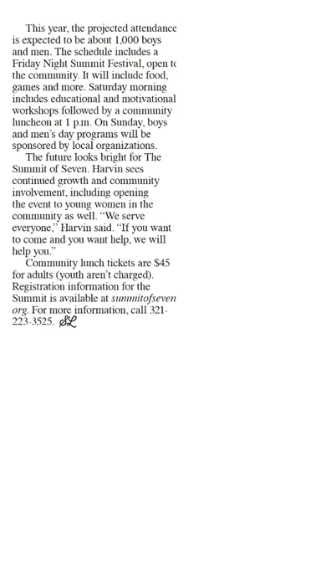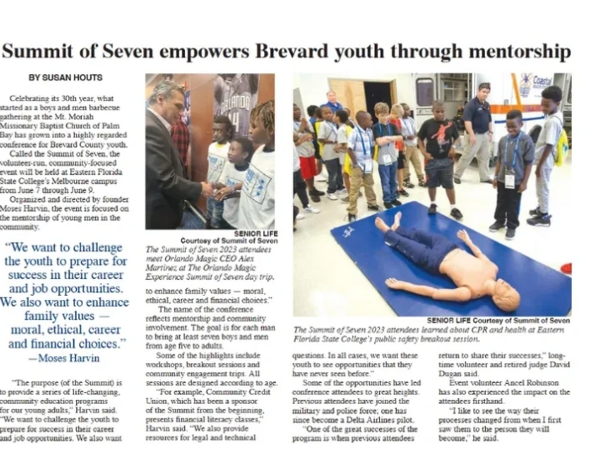 More than 1,000 people are expected n Melbourne this weekend for the “Summit of Seven” boys and men conference. The 26th annual conference held at Eastern Florida State College promises a wealth of motivational speakers and workshops on topics such as education, law enforcement, personal ethics, and teamwork.